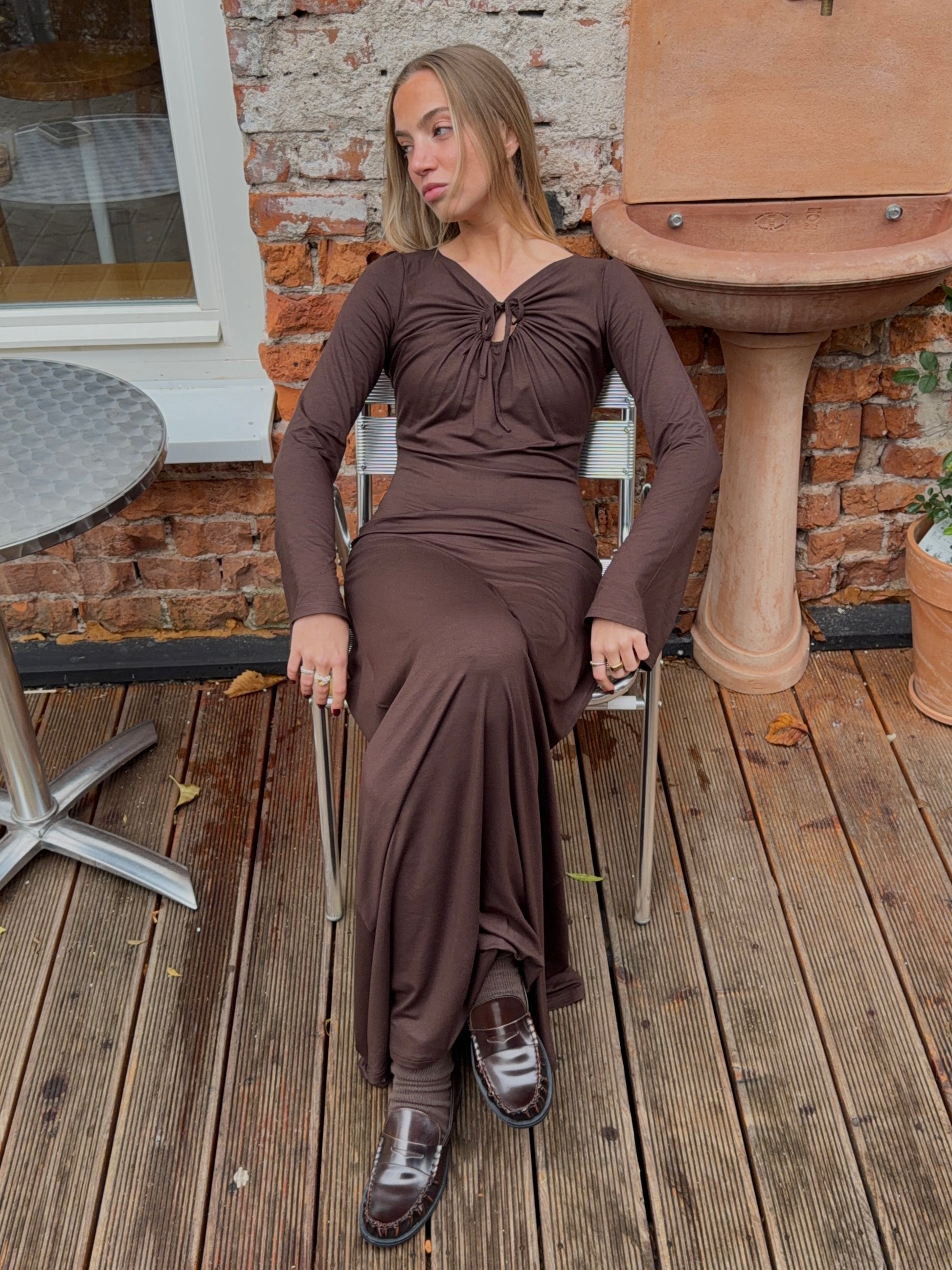 - Pranie delikatne, na lewej stronie, maks. 40°C. (Upewnij się, że dekolt jest zawiązany)